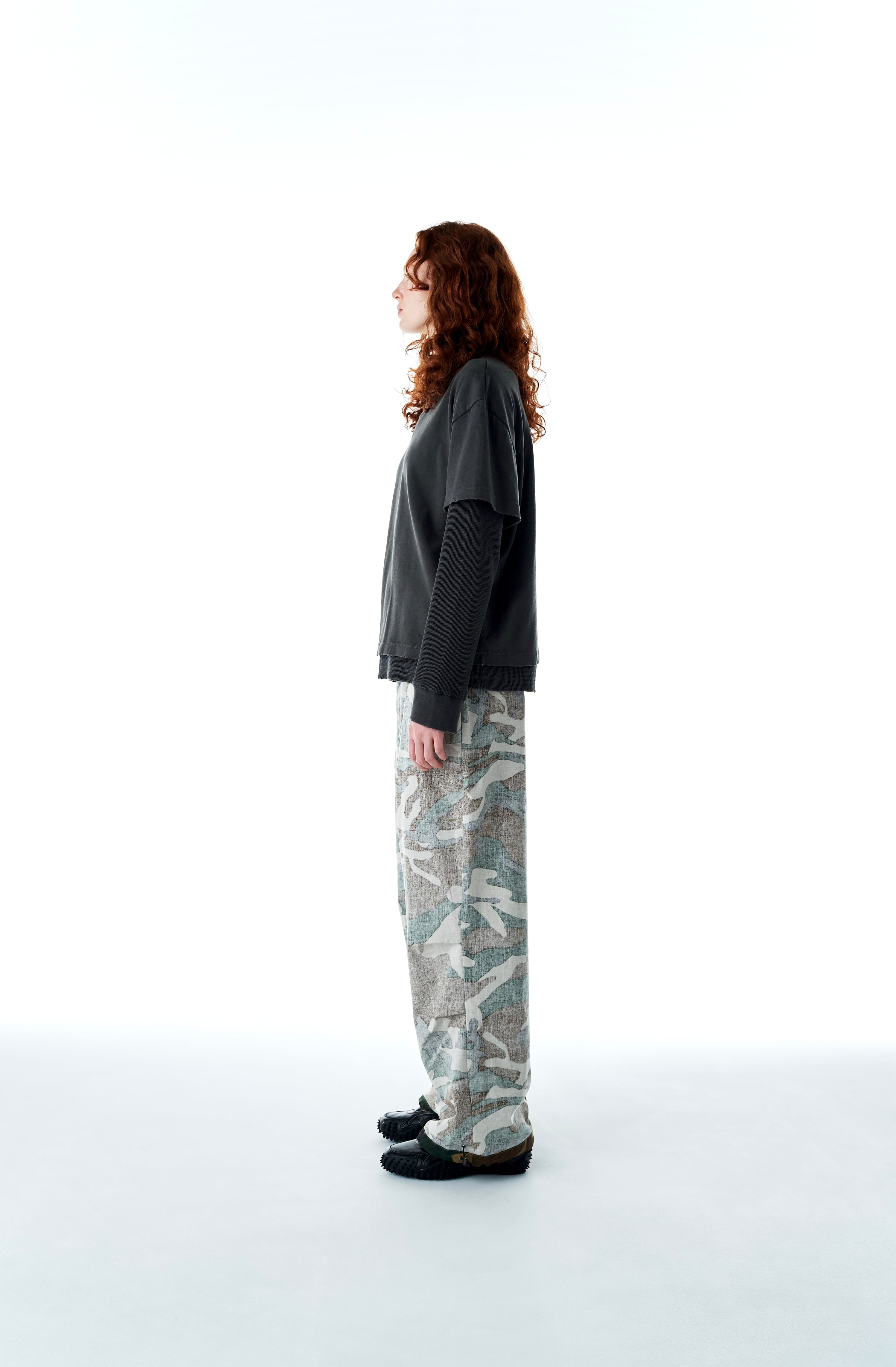 バイオウォッシュ加工を施すことで、柔らかさと落ち感を持たせつつ、色褪せたようなヴィンテージの風合いを表現。