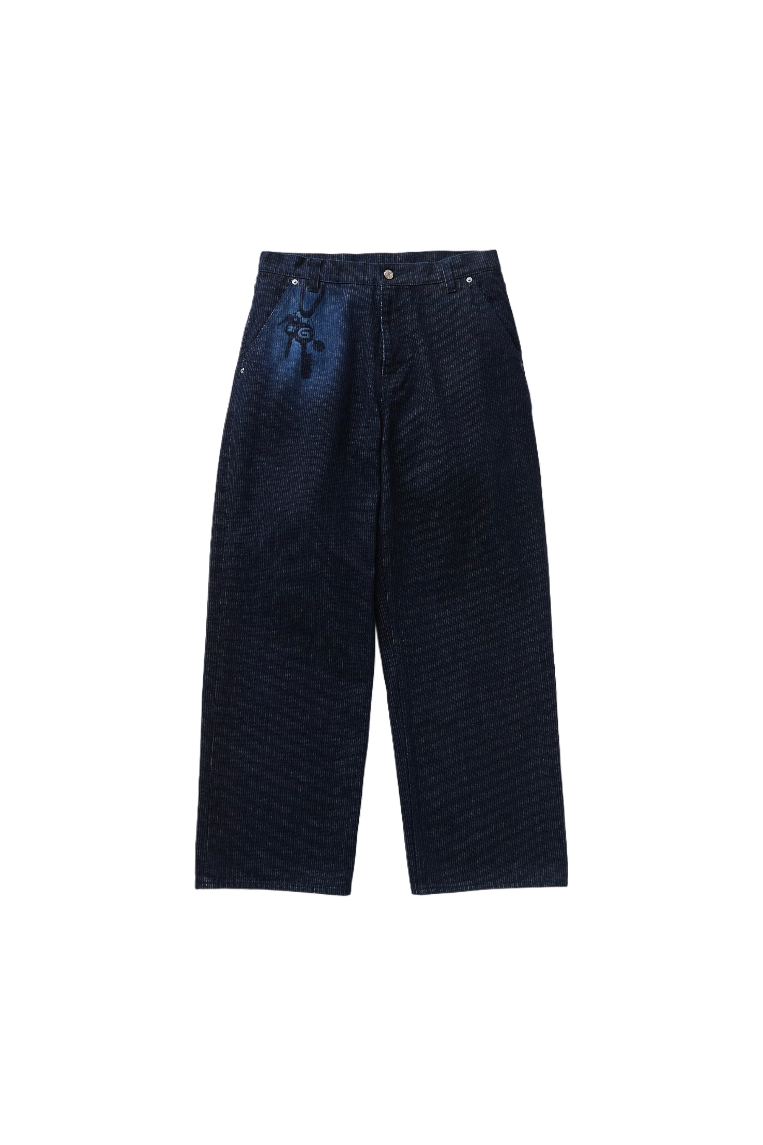 深みのある藍染めに、ヒッコリー生地へレーザープリントでグラフィックを重ね、クラフトマンシップと現代性を融合。繊細な織りと染めの技術がもたらす奥行きのある表情が特徴。、クラフトマンシップと現代性を融合させた一本。