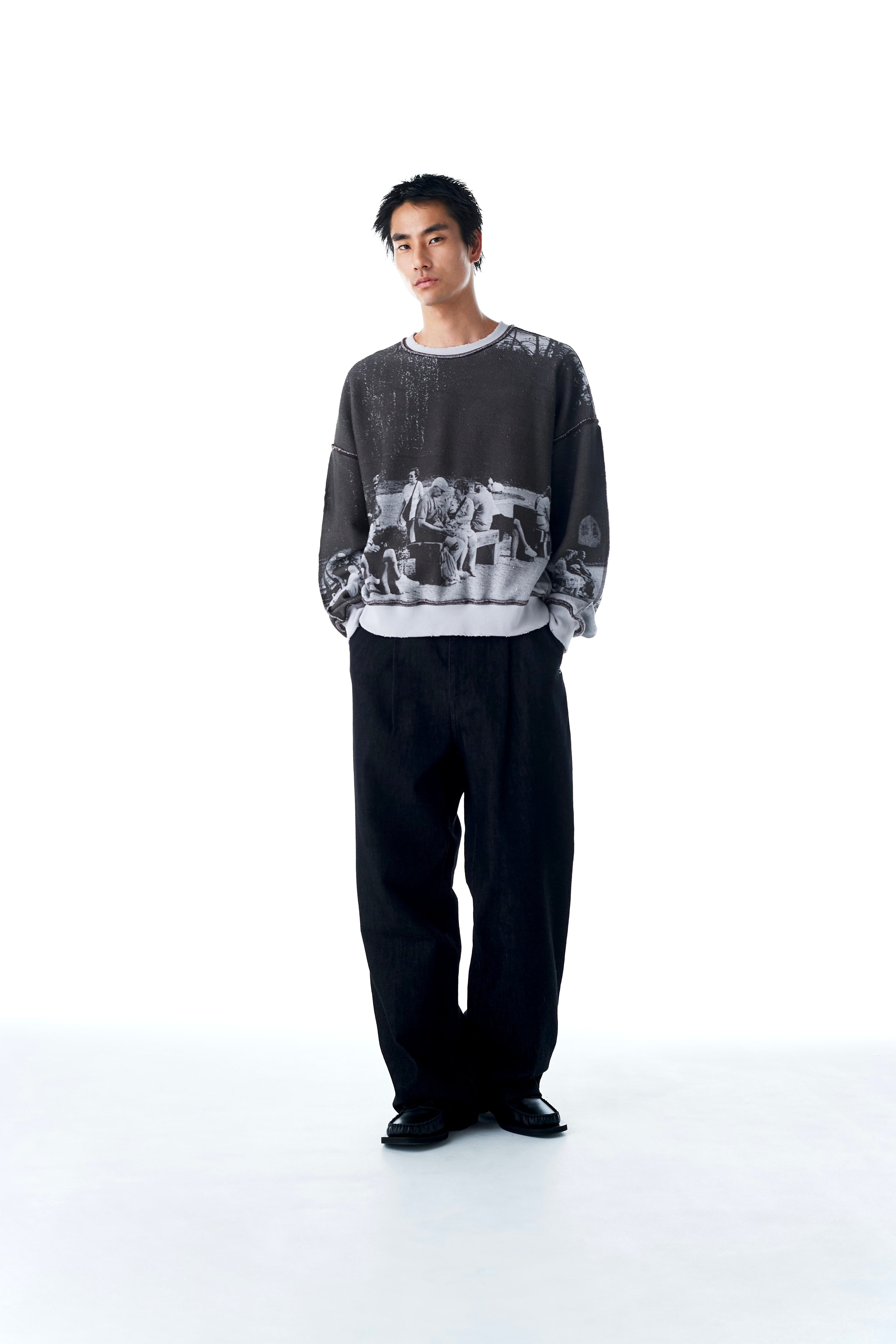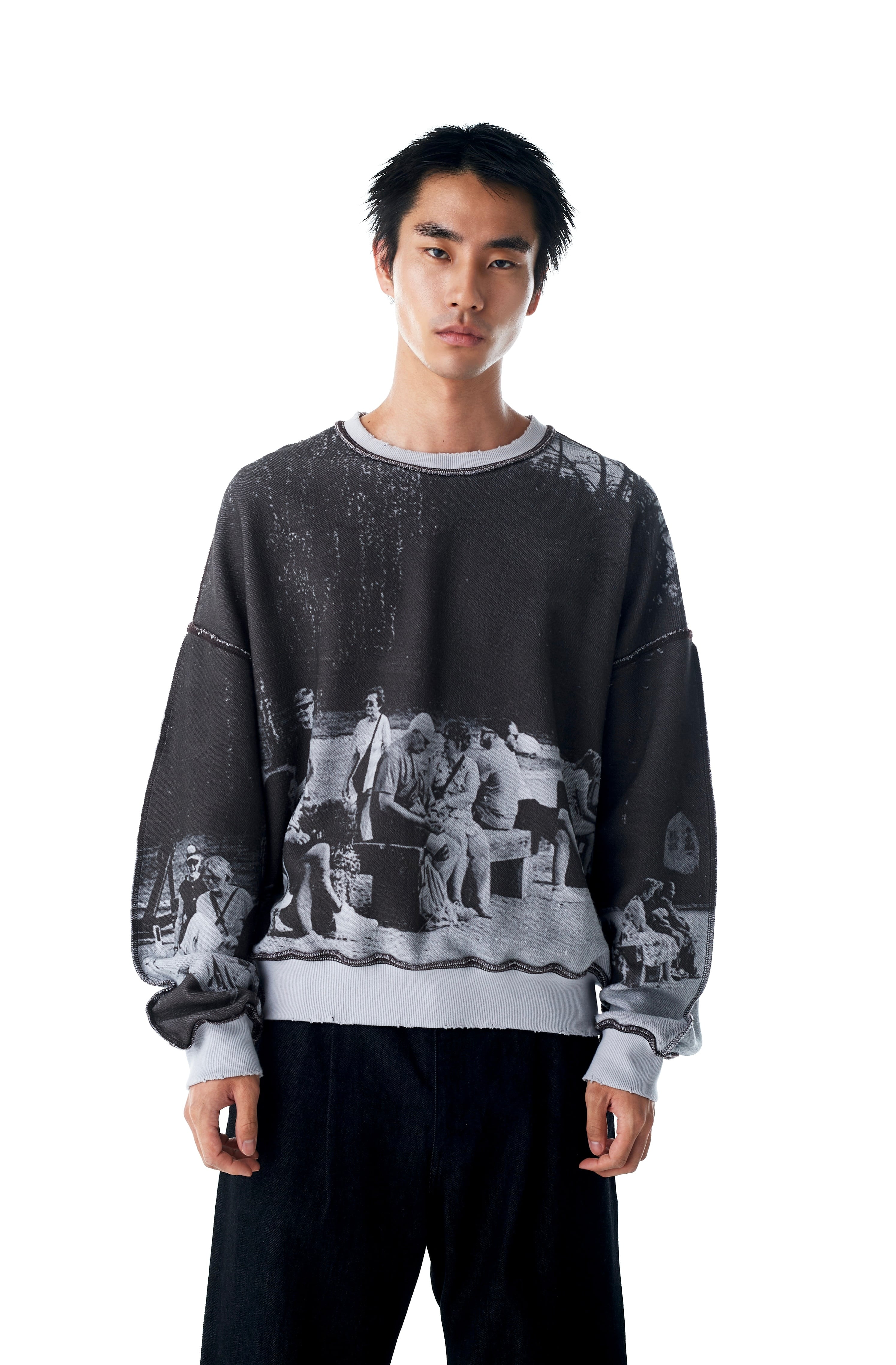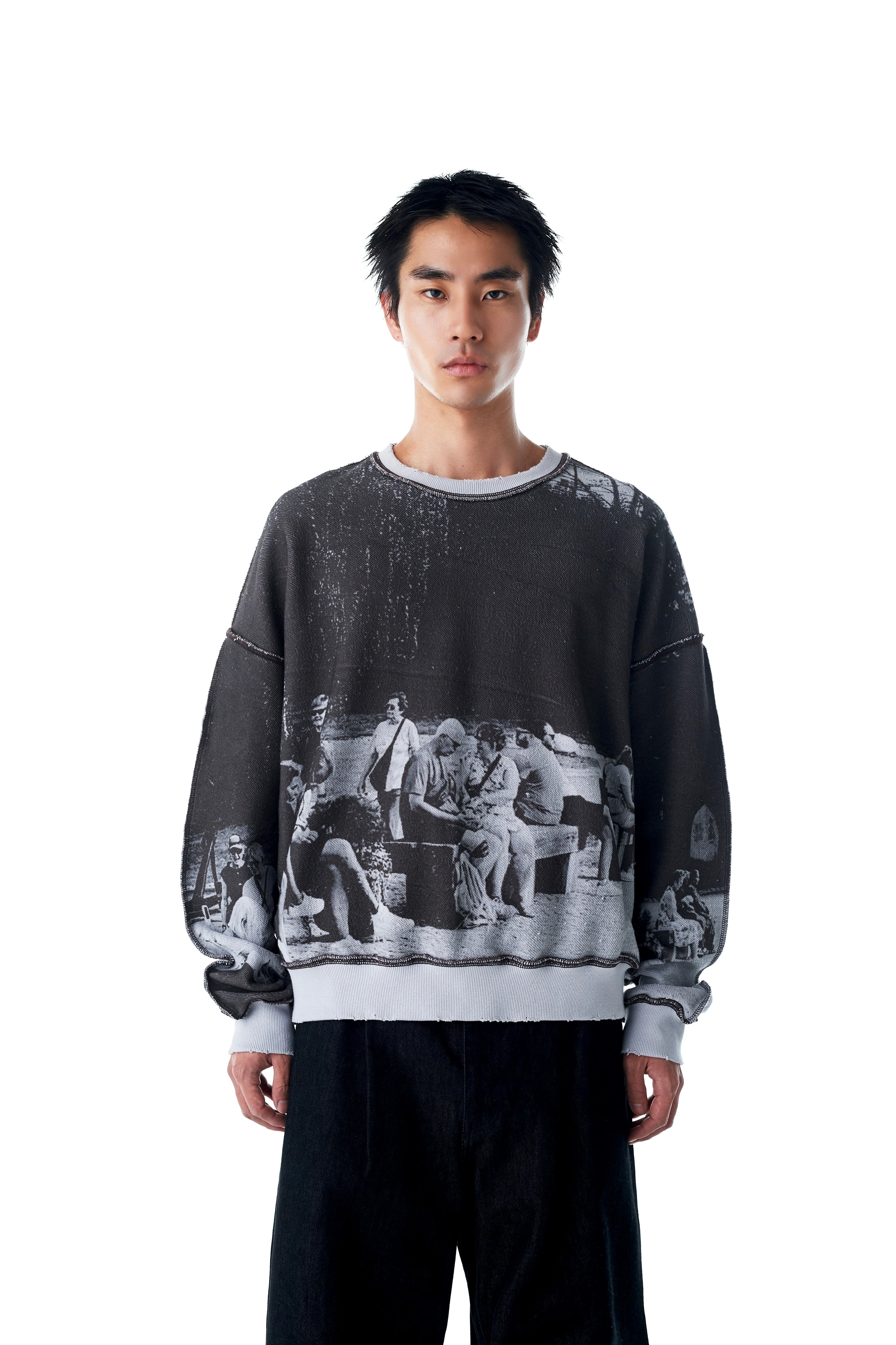 裏パイル地をあえて表地として採用し、全体にプリントを施すことで独自の表情を演出。