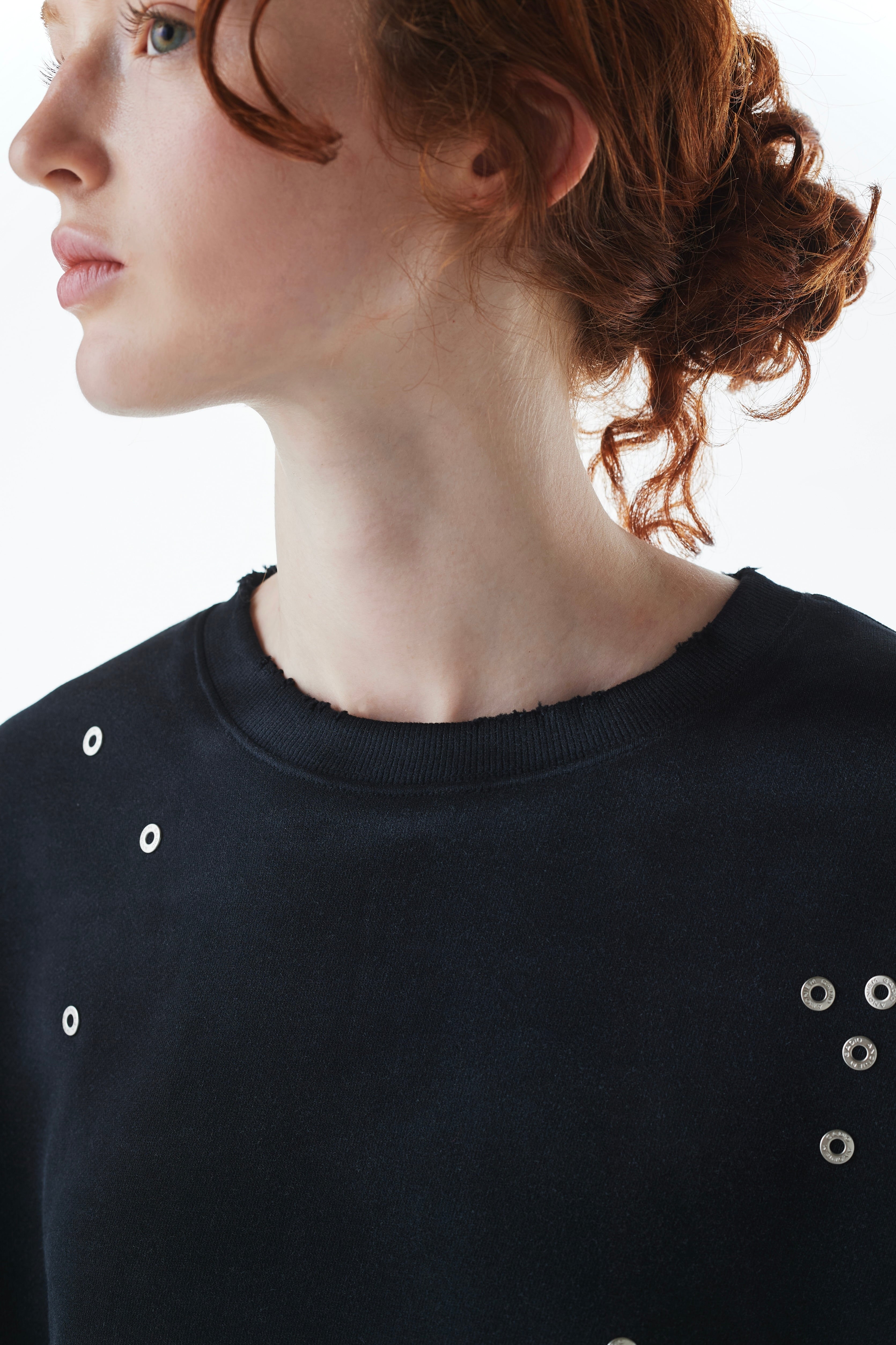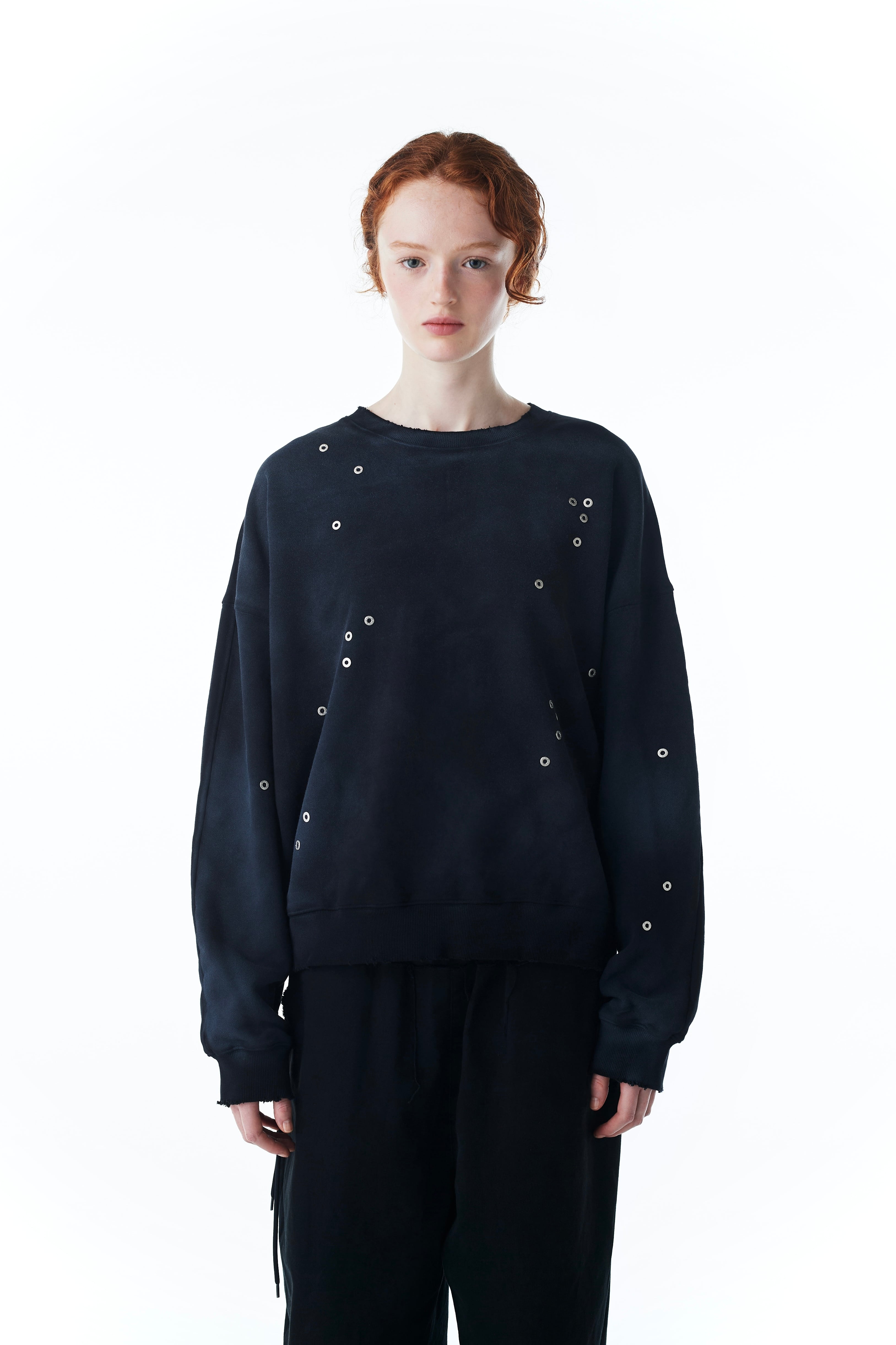 柔らかくハリのあるコットン生地にウォッシュとヴィンテージ調のステイン加工を施したスウェットシャツ。